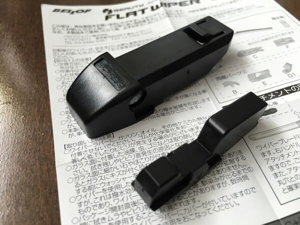 取付部品をワイパー本体に組み合わせた後は、既存のワイパーをスポッと外しBELLOFのワイパーをカチッと付けるだけです。