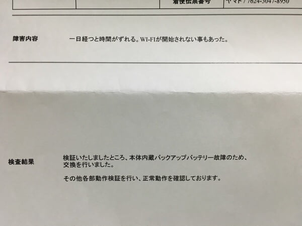 で、時計が狂った原因は、本体内蔵バックアップバッテリー故障とのこと…
