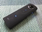真ん中のTHETAマークがシャッターボタン、その上部に映像が表示されます(ぼかしてあります)