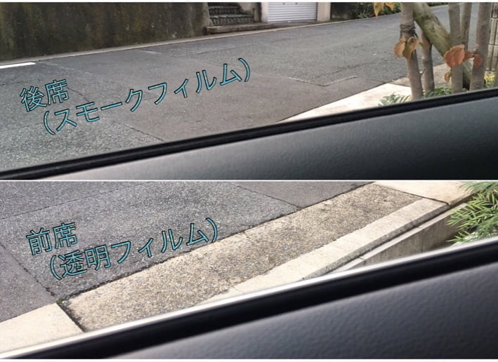 前席にフィルムを施工すると言っても法律で透明度が定められてますから、スモークフィルムは施工できません。