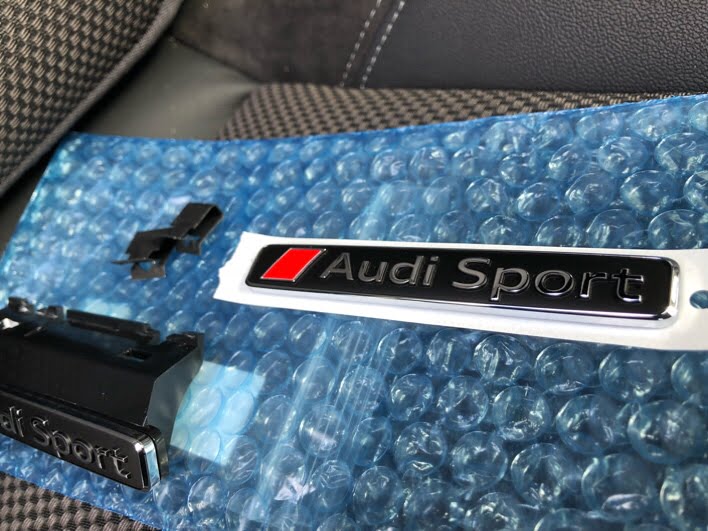 今回購入したエンブレム、Audiのスポーツブランドである「Audi Sport」と記されています。