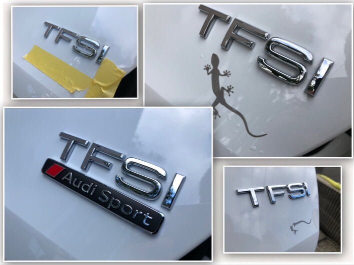 加工は、台座に張り付いているquattroエンブレムを剥がし、Audi Sportエンブレムを貼るだけ?!