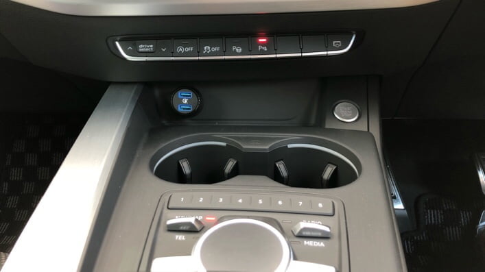 A4 Avant (B9)は、アームレスト下にUSBポートを2つ備えますが、車載プラズマクラスターなどやスマホホルダーに置きながら充電する場合には前面にUSBポートが必要になってきます。