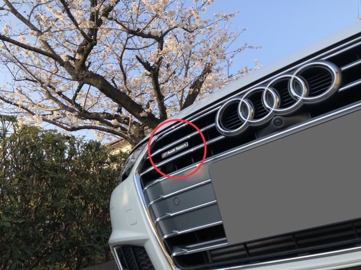 DIYで頑張って装着したアイテムは、Audi Sportエンブレム(フロント)ですね。