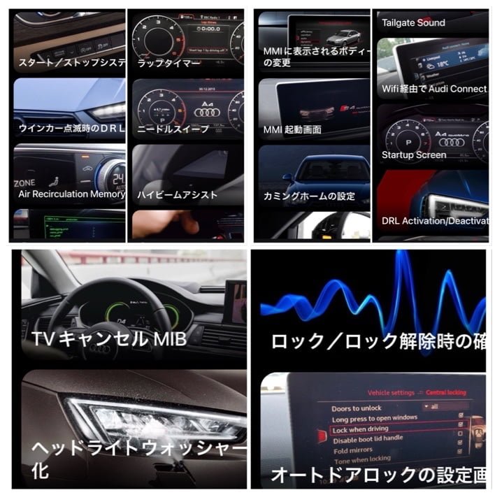 以下が、2022年4月6日時点のアウディ A4 (B9)に関するワンクリックコーディング一覧になります。