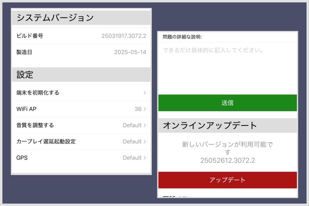 オンラインでアップデートできるので、不具合改修やApple CarPlay、Android Autoの仕様変更などにも対応可能かと思われます。